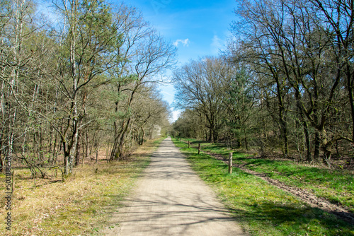 straight walking path in the park with a blue sky