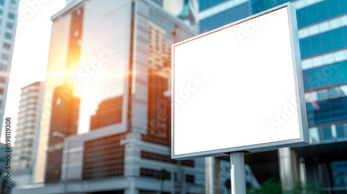 Strategic Advertising Opportunity: Blank White Billboard Mockup in Proximity to Financial District Skyline