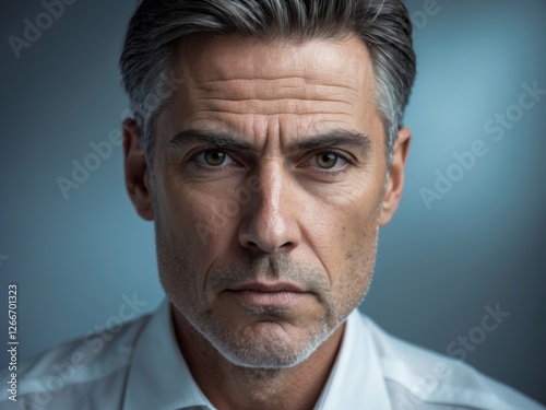 Strategic Thinker with Intense Look Facing the Camera.