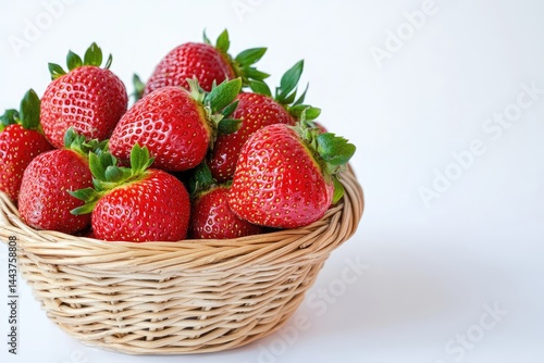Strawberries in basket, white background. AI generated illustration.