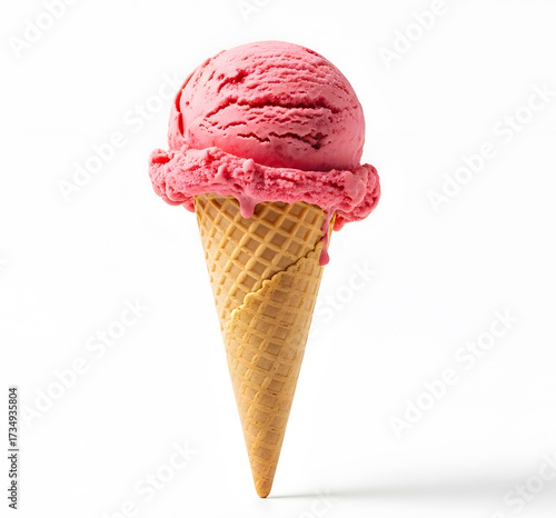 Strawberry Ice Cream Cone: A delightful scoop of strawberry ice cream sits perched atop a crisp, waffle cone, a perfect treat for a hot summer day.