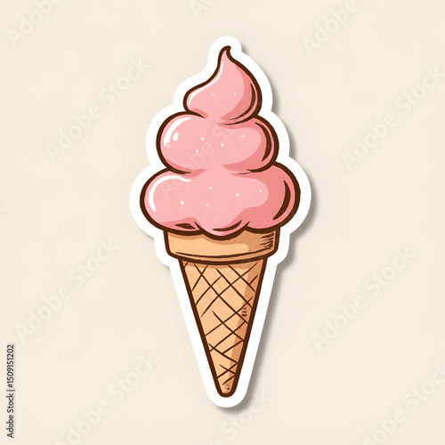 Strawberry Ice Cream Cone Illustration on Beige Background