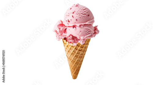 Strawberry Ice Cream Cone on transparent background