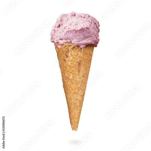 strawberry Ice cream in the cone with clipping path