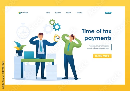 Stressful situation of the office, Time of tax payments. Flat 2D character. Landing page concepts and web design