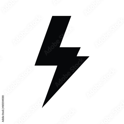 Striking black lightning bolt against stark white backdrop shines powerfully
