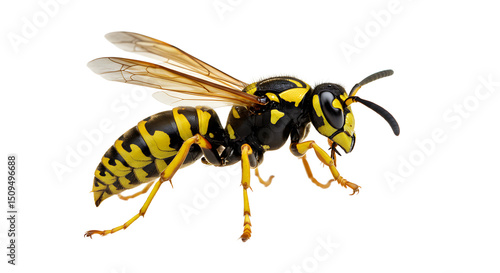 Striking Yellowjacket Wasp with Translucent Wings Detailed Legs and Black Antennae