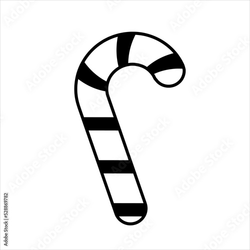 Striped candy cane. Sweetness as a gift. Linear doodle style.