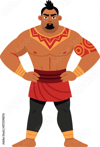 Strong Polynesian Warrior in Traditional Attire