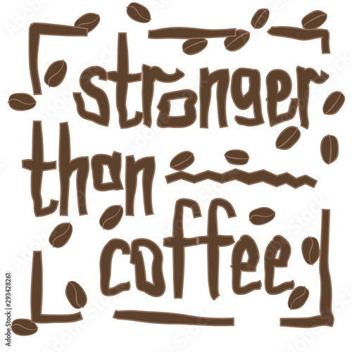 Stronger than coffee calligraphy motivation quote with dotted pattern. Coffee shop lifestyle lettering typography promotion. Mug sketch graphic design and hot drinks lovers print shopping inspiration
