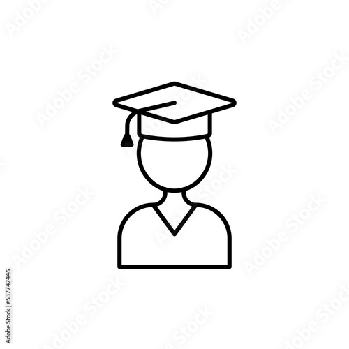Student in mantle and graduation cap outline icon, line vector sign, linear style pictogram isolated on white. Symbol, logo illustration. Editable stroke.