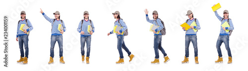 Student with books isolated on white