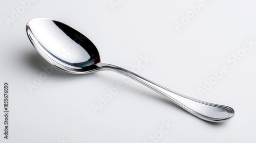 Studio lighting portrait of a single silver spoon isolated on white