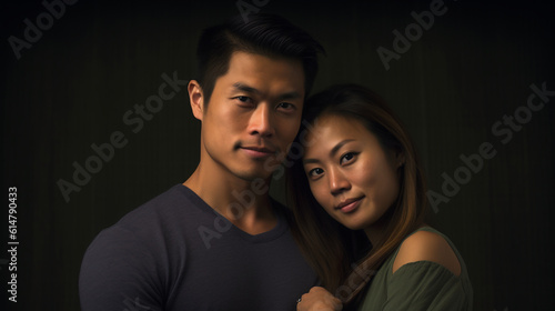 Studio portrait of an asian pacific islander young adult couple. Image generative AI.