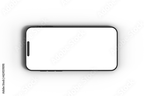 Studio shot of a modern smartphone with a blank white screen. Isolated against a white background. 3D Rendering