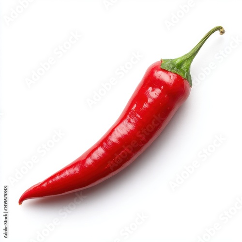 Studio shot of a single red chili pepper on white background close up top down view fresh and vibrant ingredient