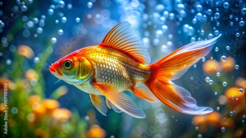Stunning Close-Up of a Vibrant Goldfish Swimming Gracefully in a Crystal Clear Aquarium Setting