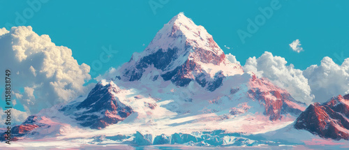 Stunning icy glacier landscape under a clear blue sky with dramatic clouds