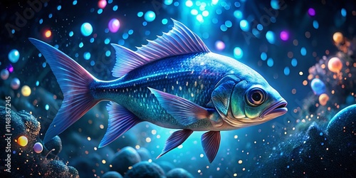 Stunning Night Photography: Ono Fish Underwater Scene, Bioluminescent Ocean, Deep Sea, Dark Water, Night Dive, Aquatic Life, Underwater World, Ocean Life