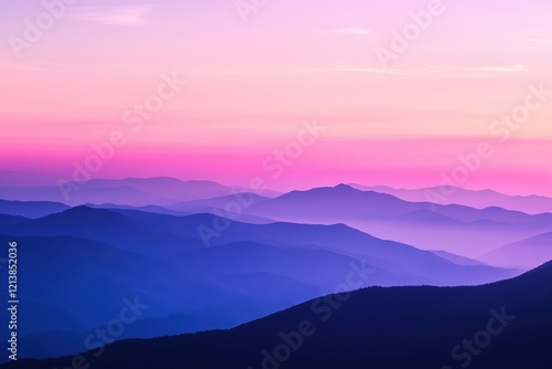 Stunning twilight hues paint the mountain landscape during dusk, creating a serene and magical atmosphere. Generative AI