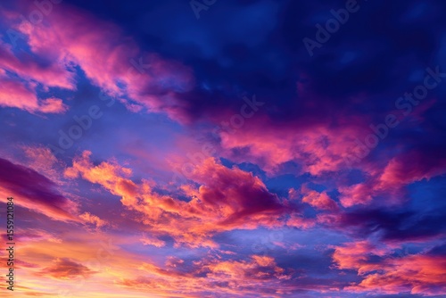 Stunning Vibrant Sunset Fiery Orange and Pink Clouds Against Deep Blue Sky