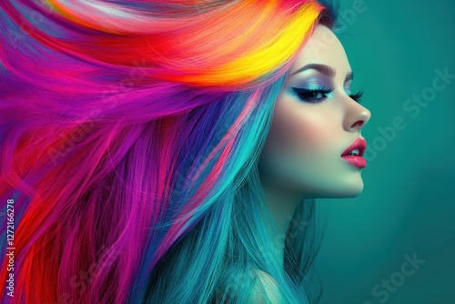 Stunning Woman Showcasing a Trendy Multi-Colored Hairstyle: A Portrait of Beauty and Confidence