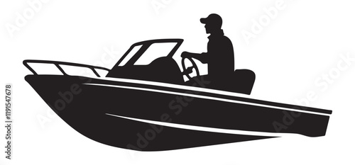 Stylish Black Silhouette Person Boating on a Boat Illustration