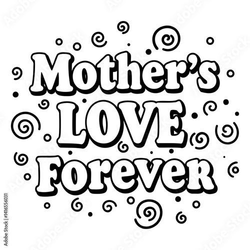 Stylish, bold black and white graphic design featuring the text Mother's Love Forever. Ideal for Mother's Day cards, social media posts, or printable coloring pages.