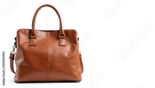 Stylish brown leather tote bag isolated on white background , full shot, handbag