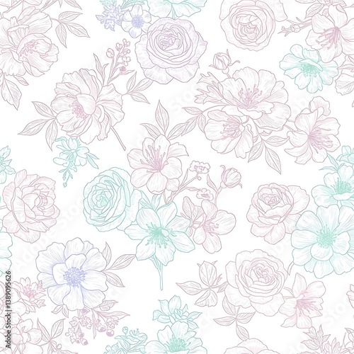 Stylish Hand-Drawn Floral Seamless Pattern, Elegant Floral Background Design