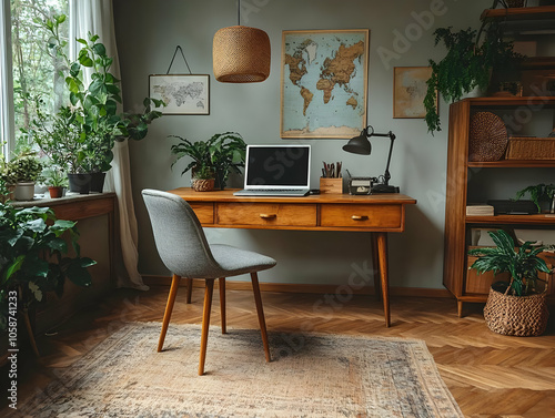 Stylish Home Office Photo - Urban Jungle Interior Design with Wooden Desk