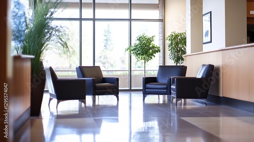 Stylish Waiting Area with Chairs and Natural Light Creating a Welcoming Environment : Generative AI