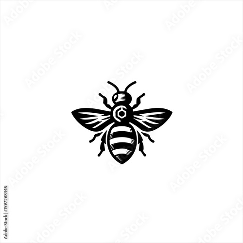 Stylized Black and White Bee Icon.