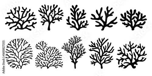 Stylized Black and White Seaweed Silhouette Collection Underwater Plants Marine Flora Diverse Shapes Artistic Representations Nature Inspired Illustrations