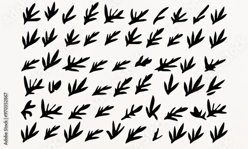Stylized black bird tracks arranged in a repeating pattern on a light background.