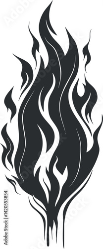 Stylized black flame design representing heat energy and dynamic movement in an abstract illustration.