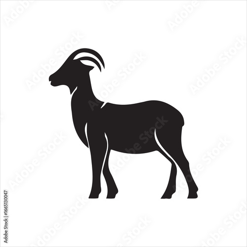 Stylized black goat silhouette on white background