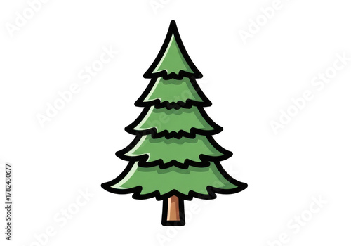 Stylized cartoon pine tree illustration isolated for nature design