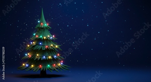 Stylized christmas tree with lights under a starry night sky digital artwork