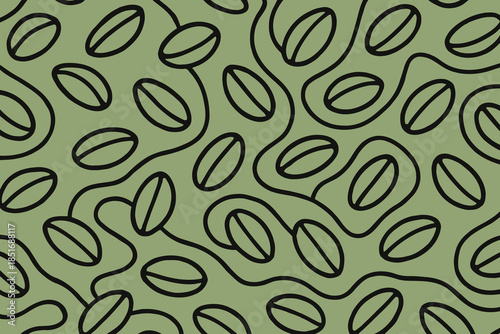 Stylized Coffee Bean Line Art Pattern on Sage Green Background