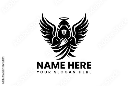 Stylized Dark Angel with Sword Vector Graphic. Mythical Fantasy Design