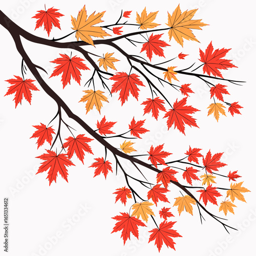 Stylized illustration of a tree branch with red and yellow autumn leaves on a white background