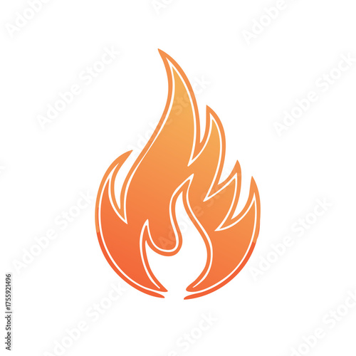 Stylized orange flame graphic isolated on white background representing fire or heat and energy