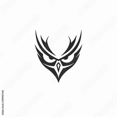 Stylized Owl Head Tattoo Design in Black and White Illustration