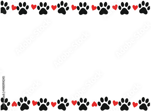 Stylized Paw Print and Heart Frame Vector, Minimalist Pet Illustration for Digital Art Projects