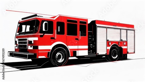 Stylized Red Fire Truck Illustration on White Background, Graphic Design.