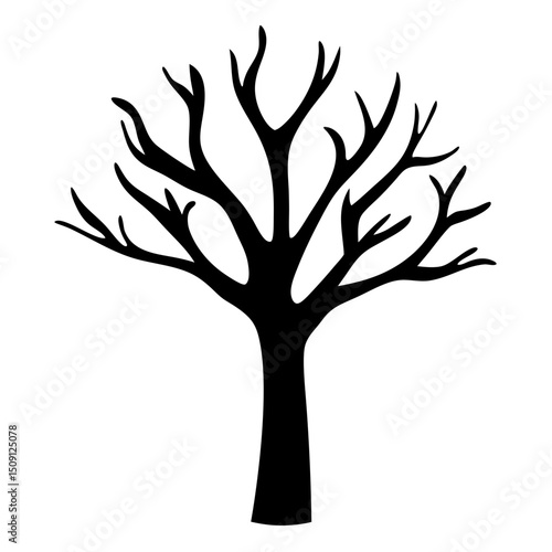 Stylized Silhouette of a Bare Tree with Branches Against a White Background