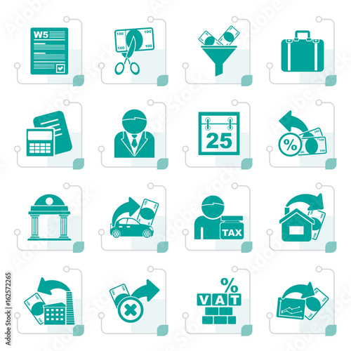 Stylized Taxes, business and finance icons - vector icon set