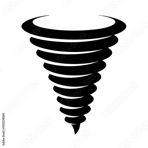 Stylized tornado illustration in black and white, representing natural disaster