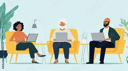 Sub-Saharan African and Asian retirees working part-time remotely, balancing work and retirement with flexibility